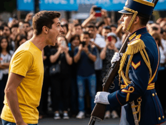 Un enfant gâté ridiculise une sentinelle grave — l’événement qui s’ensuit calme les spectateurs…