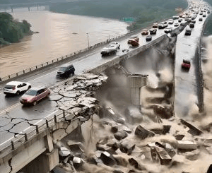 Un pont s’effondre alors que les eaux de crue atteignent leurs limites !Voir plus..
