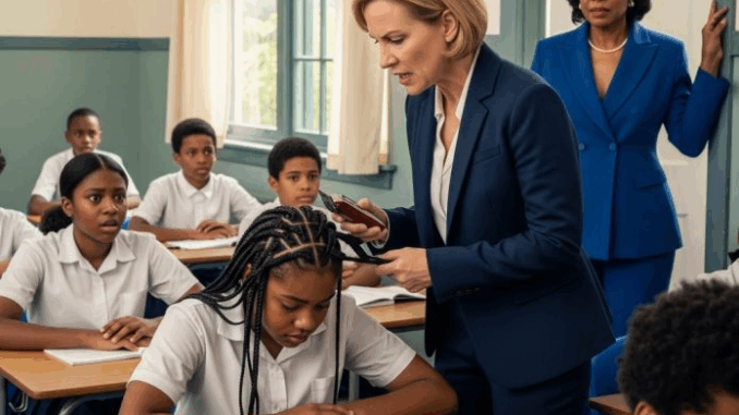 Courtney Johnson, une élève noire de douze ans à la personnalité brillante et au fort sens de l’individualité, se figea sur sa chaise. Les autres élèves de cinquième s’agitèrent, mal à l’aise, lorsque Mme Whitman désigna directement les cheveux de Courtney. Courtney les avait coiffés en tresses serrées et soignées, ornées de perles – une coiffure dont elle avait été fière tout le week-end. Sa tante avait passé des heures à les tresser, et Courtney avait hâte de les montrer.
