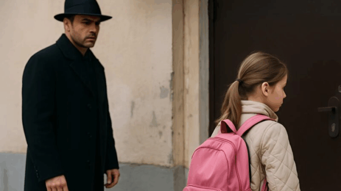 La fillette de sept ans rentrait chez elle après l’école. Elle tenait son cartable, dont les cahiers dépassaient de manière irrégulière, et sur son épaule pendait une écharpe qui glissait sans cesse. La cour était calme et vide. Seul quelqu’un se tenait près de l’entrée.