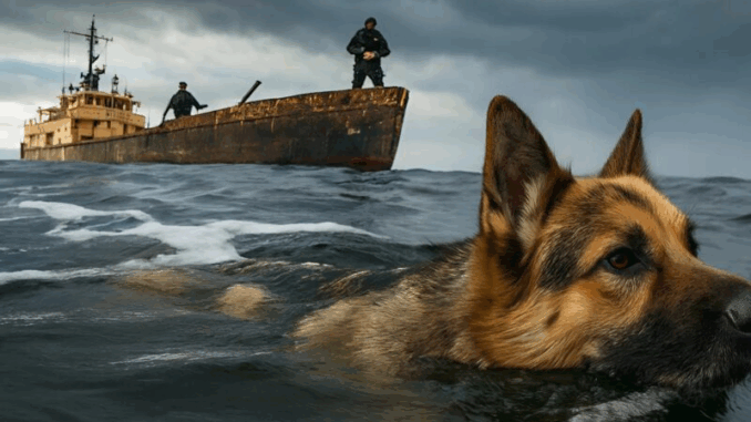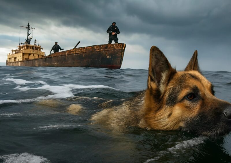 Tout le monde se précipita vers la rambarde. Devant eux se trouvait bel et bien un berger allemand, nageant seul, au beau milieu de l’immense mer. Les marins échangèrent des regards étonnés : comment un chien avait-il pu atterrir ici ?