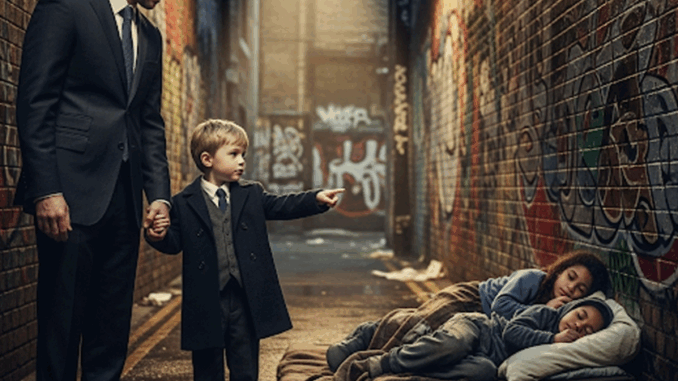 « Avez-vous mangé quelque chose aujourd’hui ? » demanda Eduardo en s’agenouillant à la hauteur des enfants, essayant de contrôler l’émotion qui montait dans sa voix. « Hier matin, un boulanger du coin nous a donné un vieux sandwich à partager », dit Mateo, les yeux baissés, gêné par la situation. « Mais aujourd’hui, on n’a rien mangé. Certains passent, nous regardent avec pitié, mais font semblant de ne pas nous voir et continuent leur chemin rapidement. » Pedro sortit aussitôt un paquet entier de biscuits fourrés de son coûteux cartable et l’offrit aux enfants d’un geste spontané et généreux qui emplit Eduardo d’une fierté paternelle et d’une terreur existentielle à la fois.