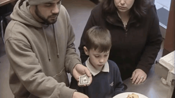 Quelques instants plus tard, une mère et son jeune fils entrèrent. Ils s’approchèrent du comptoir, le regard plein d’espoir, cinq dollars froissés à la main, demandant le petit-déjeuner. « Ce n’est pas suffisant », dit la caissière d’un ton neutre, les écartant d’un geste dédaigneux. Le visage du jeune garçon se décomposa et les épaules de sa mère s’affaissèrent lorsqu’ils se retournèrent pour partir.
