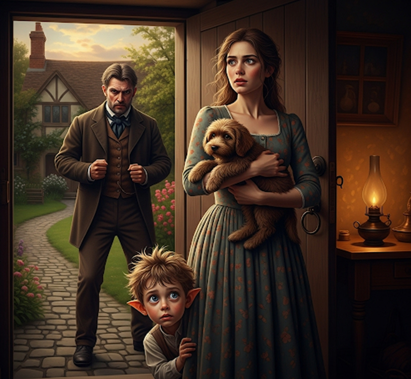 C’étaient les fils du maire. Ils frappèrent à nouveau à la porte en bois, et ses mains tremblèrent. Elle saisit rapidement la « surprise » qu’elle avait achetée la semaine précédente – un petit chien coquelicot qu’elle gardait à l’intérieur – et l’approcha de la porte.