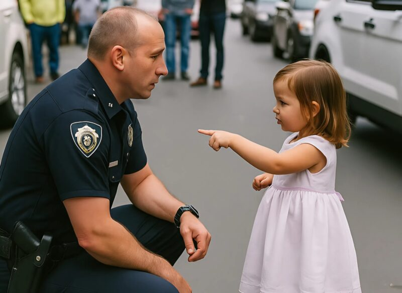 Personne ne comprit immédiatement d’où elle venait. Une petite fille d’environ six ans se tenait sur le trottoir, vêtue d’une élégante robe blanche, comme si elle revenait d’une fête.