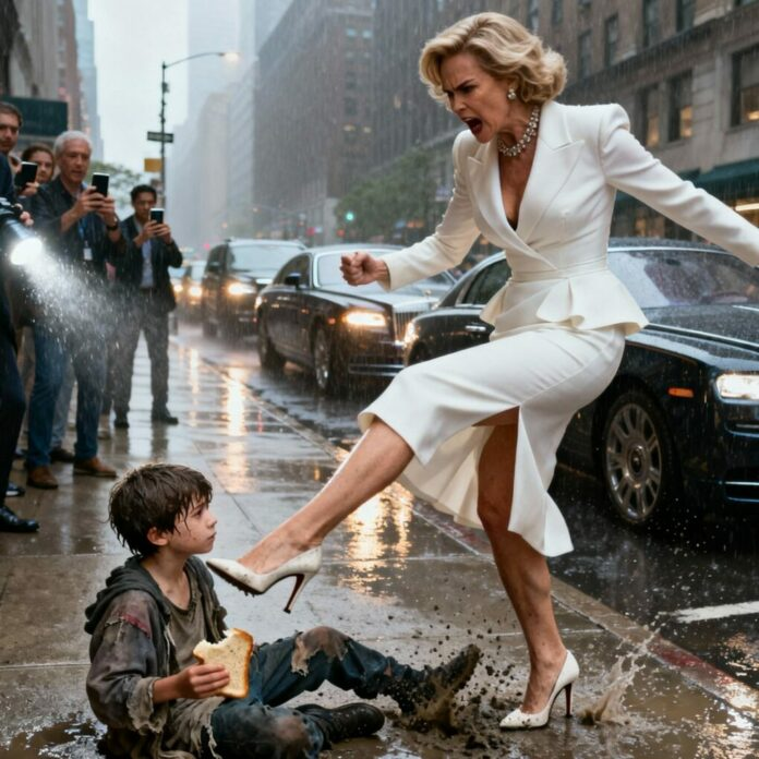Des murmures d’indignation parcoururent la foule. Les appareils photo crépitaient. Isabella Reed, icône de la mode et philanthrope, filmée en train de bousculer un enfant sans-abri.