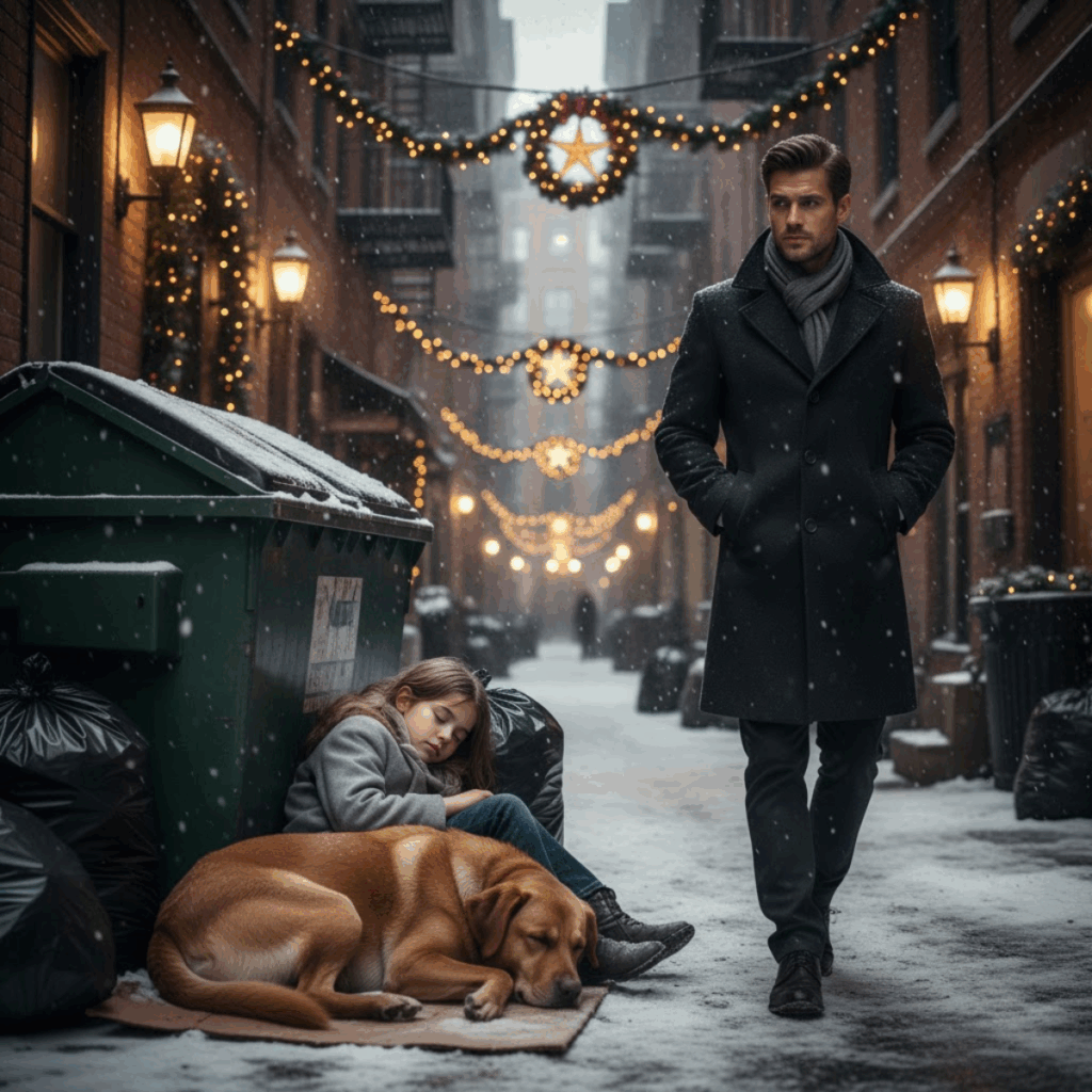 Ne prenez pas mon chien. C’est tout ce que j’ai. Je ne suis pas là pour le prendre. Un PDG, père célibataire, a trouvé une petite fille et son chien endormis sur des ordures la veille de Noël. La vérité l’a bouleversé. La neige tombait abondamment ce soir-là, recouvrant les rues froides de New York d’un silence blanc. Mais dans la ruelle derrière un restaurant chic, à côté de tas de cartons déchirés et d’ordures, une petite fille dormait, recroquevillée sur le sol gelé, serrant contre elle un chien brun tremblant.