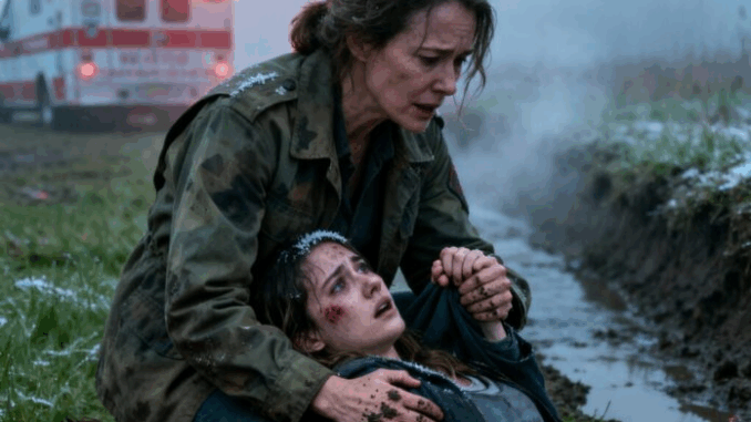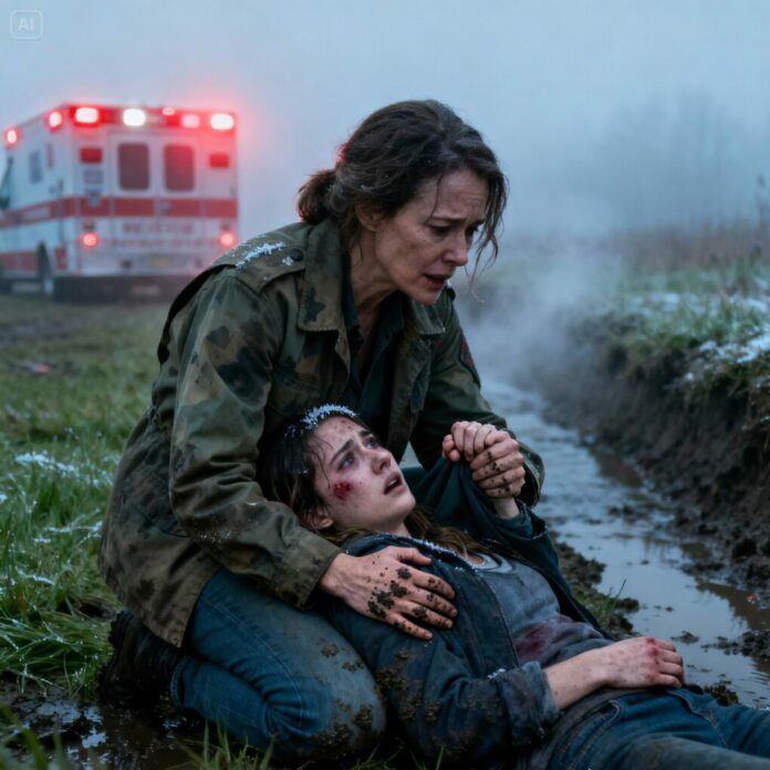 Le brouillard matinal enveloppait la route départementale 19 lorsque Helena Ward s’arrêta, attirée par la vision d’une forme pâle et immobile dans le fossé. D’abord, elle crut à un animal. Puis elle aperçut une main. Les doigts couverts de boue tressaillirent faiblement, et son réflexe de survie prit le dessus avant même que son cœur n’ait eu le temps de réagir.