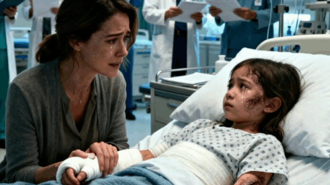 Quand je suis arrivée à l’hôpital, le monde semblait figé, comme enveloppé par la panique. Dans la chambre 417, ma fille de huit ans était allongée, enveloppée de plusieurs couches de bandages blancs, son petit corps cerné de fils et de machines. Ses joues étaient striées de larmes séchées.