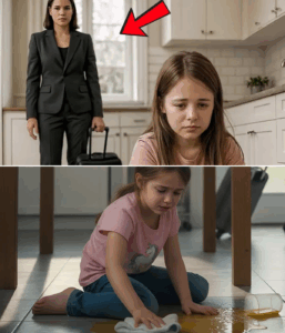 Rentrer de voyage un jour plus tôt aurait dû être une agréable surprise. Mais ce soir-là, en franchissant le seuil de la porte, j’ai trouvé ma fille de neuf ans à quatre pattes sur le carrelage, en train de frotter le sol de la cuisine. Toute seule. Ses petits bras s’agitaient avec une concentration fébrile, comme si elle essayait de « bien faire les choses ».