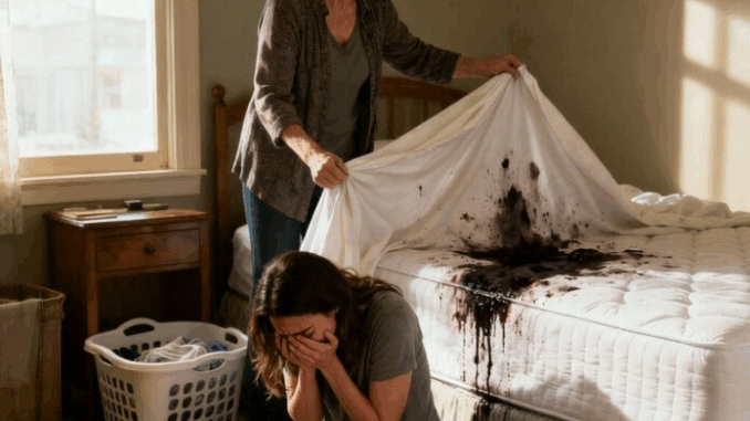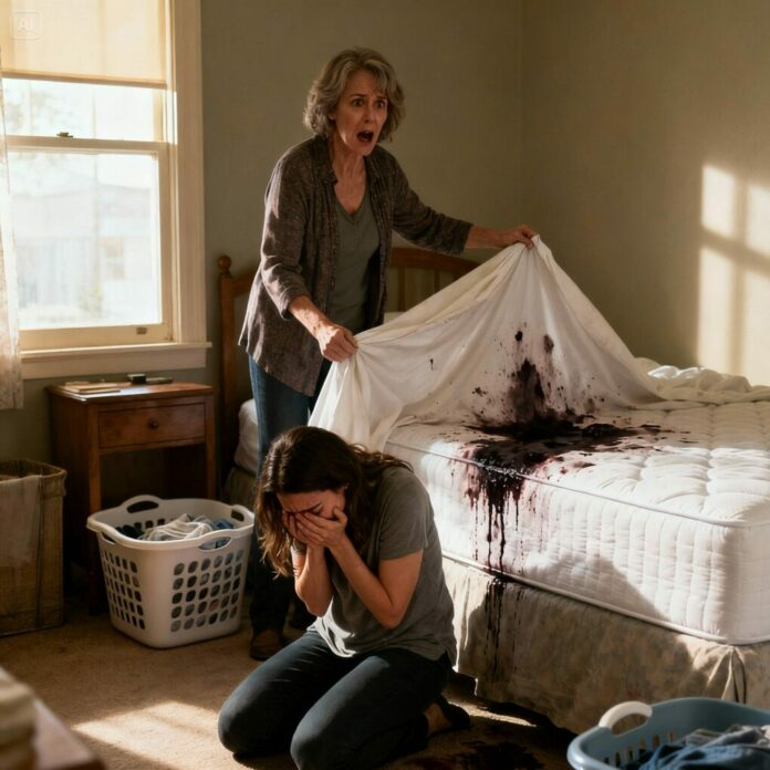 En entrant furtivement dans la pension, je me suis figée. Une forte odeur métallique imprégnait l’air. Je me suis approchée du lit et j’ai soulevé le drap. Ce que j’ai vu m’a retourné l’estomac : des taches sombres, profondes et anciennes qui avaient imbibé le matelas. Du sang.