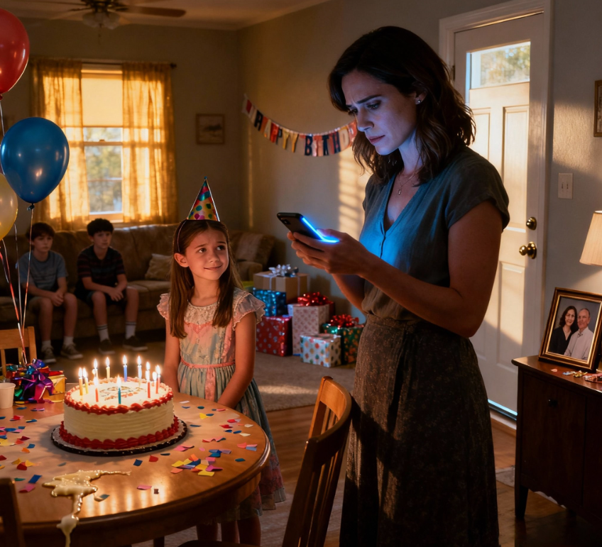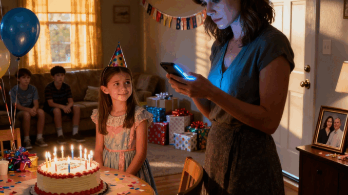 15h00. Le gâteau était coupé et servi. Les enfants étaient couverts de glaçage, grisés par le sucre, ce qui allait bientôt se traduire par des crises de colère et des coups de fatigue que leurs parents devraient gérer. Les cadeaux avaient été ouverts : un livre de coloriage d’Emma, des cubes de construction de Michael, une licorne en peluche de Sofia. Lily avait remercié poliment chaque ami, comme nous le lui avions appris, mais son regard était sans cesse attiré par la porte.