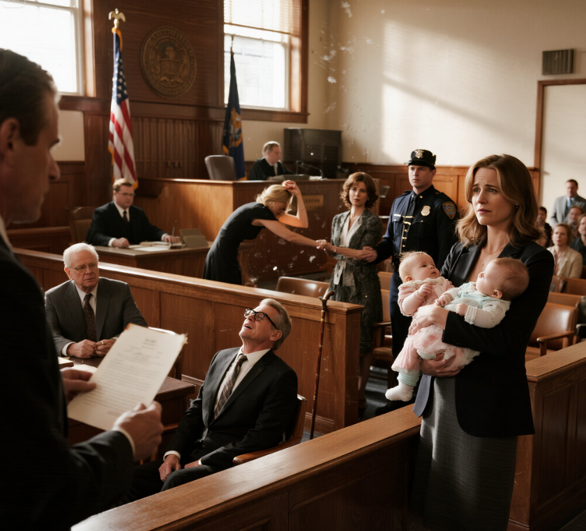 Une femme abandonnée avec des bébés fait irruption au tribunal — Sa maîtresse s’évanouit pendant que le juge lit le testament…