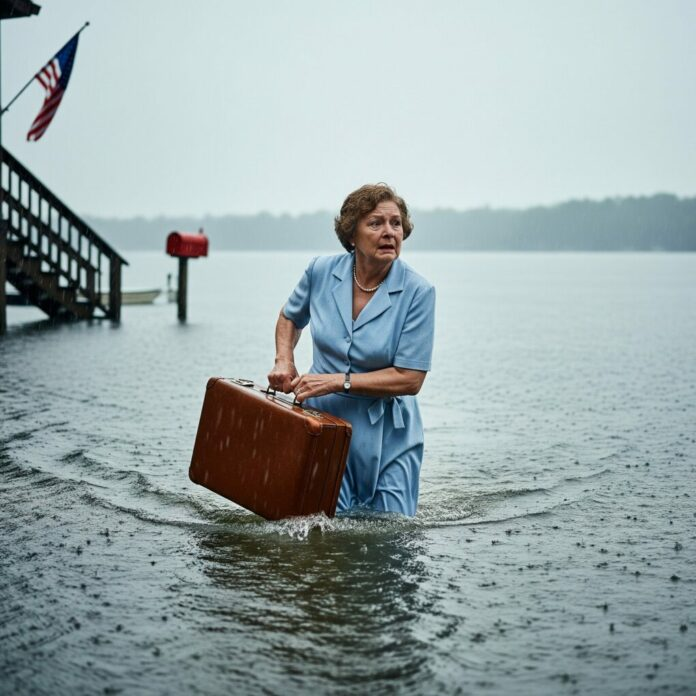 Elle fit tournoyer la valise et la lança dans le lac avec une force disproportionnée par rapport à sa petite taille. Elle s’écrasa à la surface dans un fracas brutal, flotta une fois, puis commença à couler.