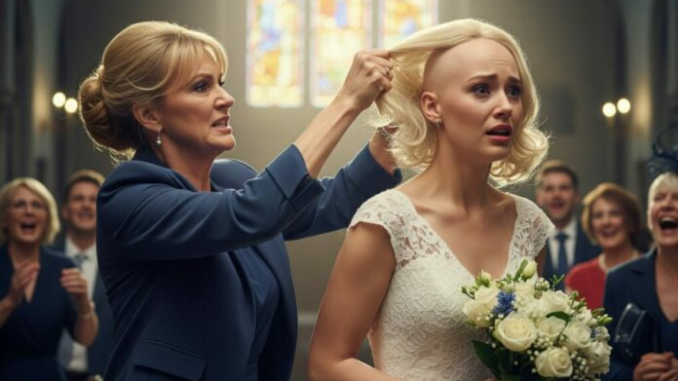 Des murmures d’étonnement parcoururent l’église. Quelques invités rirent même avant de se couvrir la bouche. Janice brandit la perruque comme un trophée.