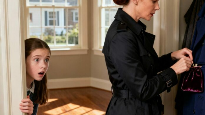 Se penchant par-dessus le canapé, elle vit sa tante Lydia entrer, élégamment vêtue, ne portant qu’une petite pochette en velours. D’un geste assuré, Lydia glissa la pochette dans la poche du manteau bleu marine de Sarah. Le cœur d’Emily s’emballa tandis que Lydia murmurait au téléphone : « J’ai tout réglé. Tu peux appeler la police ce soir. Cet imbécile ne se doutera de rien. » Puis elle disparut.